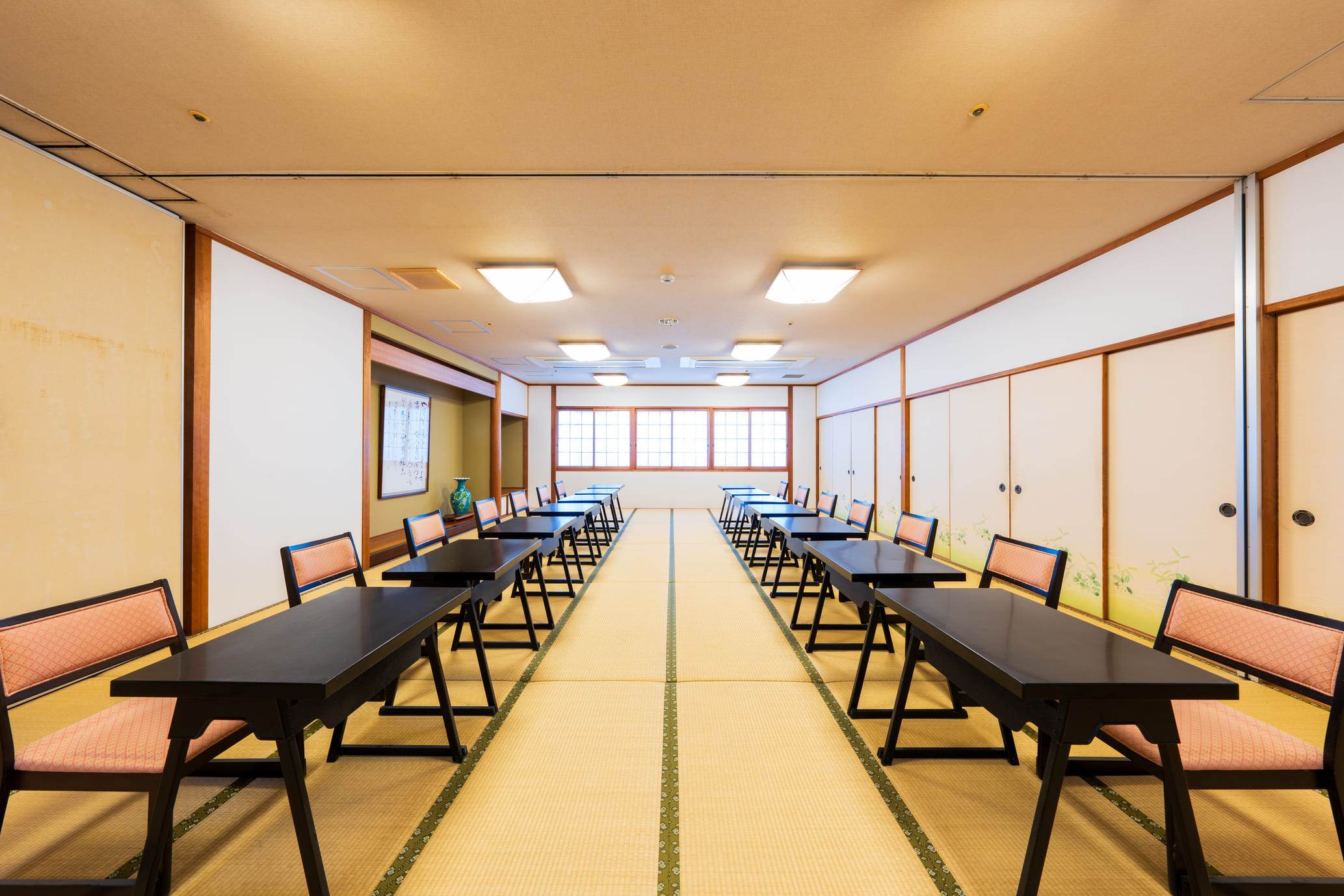団体のお客様向けに広々とした宴会場を、また小グループのお客様向けに個室の食事会場をご用意しています。個人のお客様には部屋食も対応。