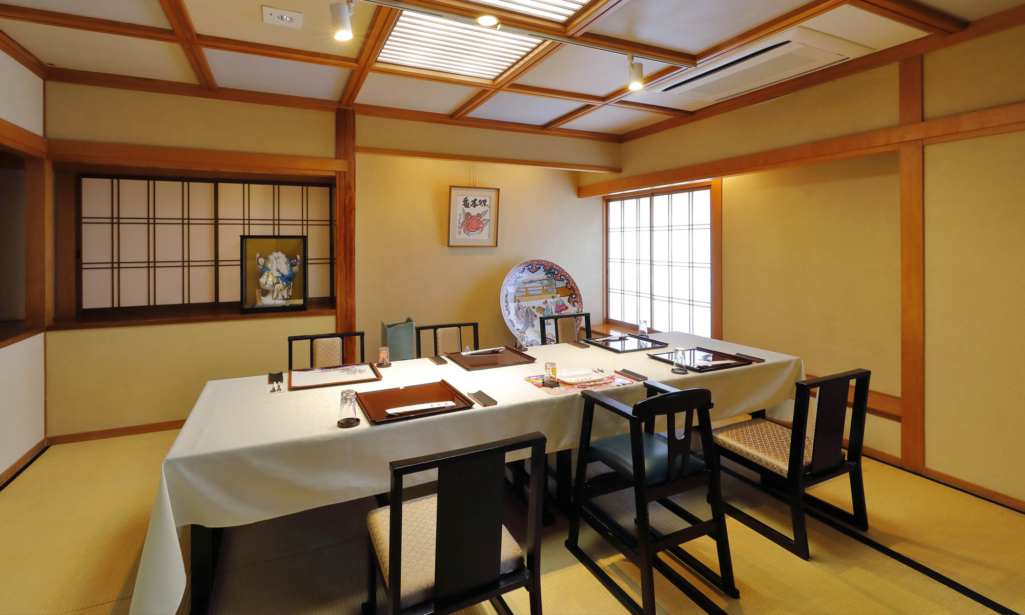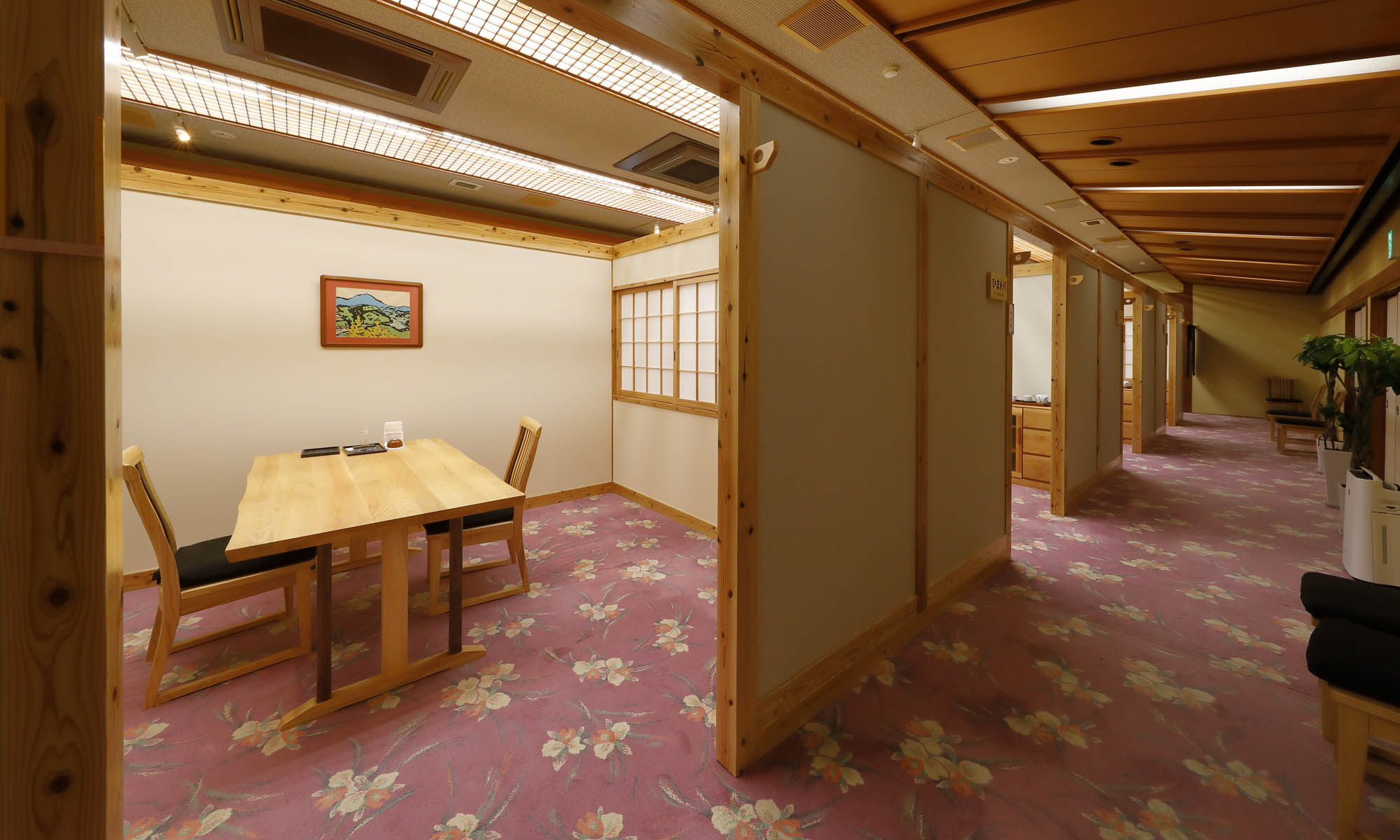 個人のお客様にはゆったり食事ができる「島津藩」が18室、「四季彩」が8室のお食事処をご用意。落ち着いた空間でゆっくりと食事を楽しめます。また、ご希望に応じてお部屋食にも対応してくれるのも嬉しいポイントです。