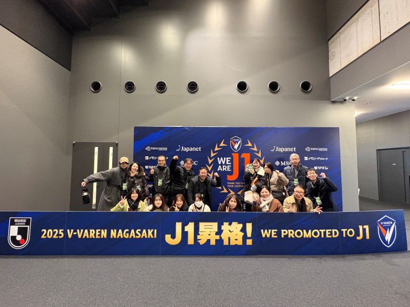 「J1昇格!」の看板などもあり、フォトスポットもたくさん!スタッフの方が撮影をサポートしてくださいます。団体様の思い出作りにもぴったりです。サッカーファンの方はもちろん、私のようにサッカーに詳しくない人こそ、普段は見られない景色に夢中になること間違いなし!長崎市内を観光される際は、ぜひ足を運んでみてください♪