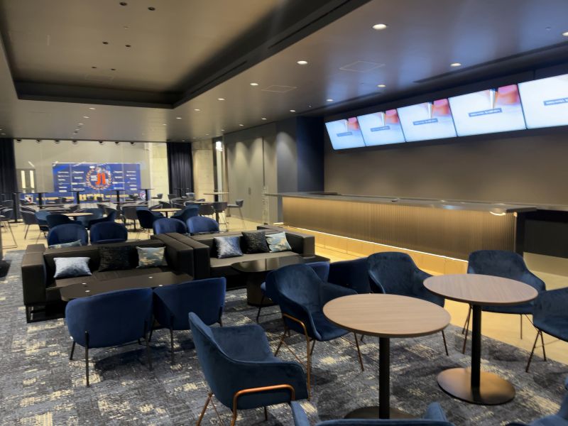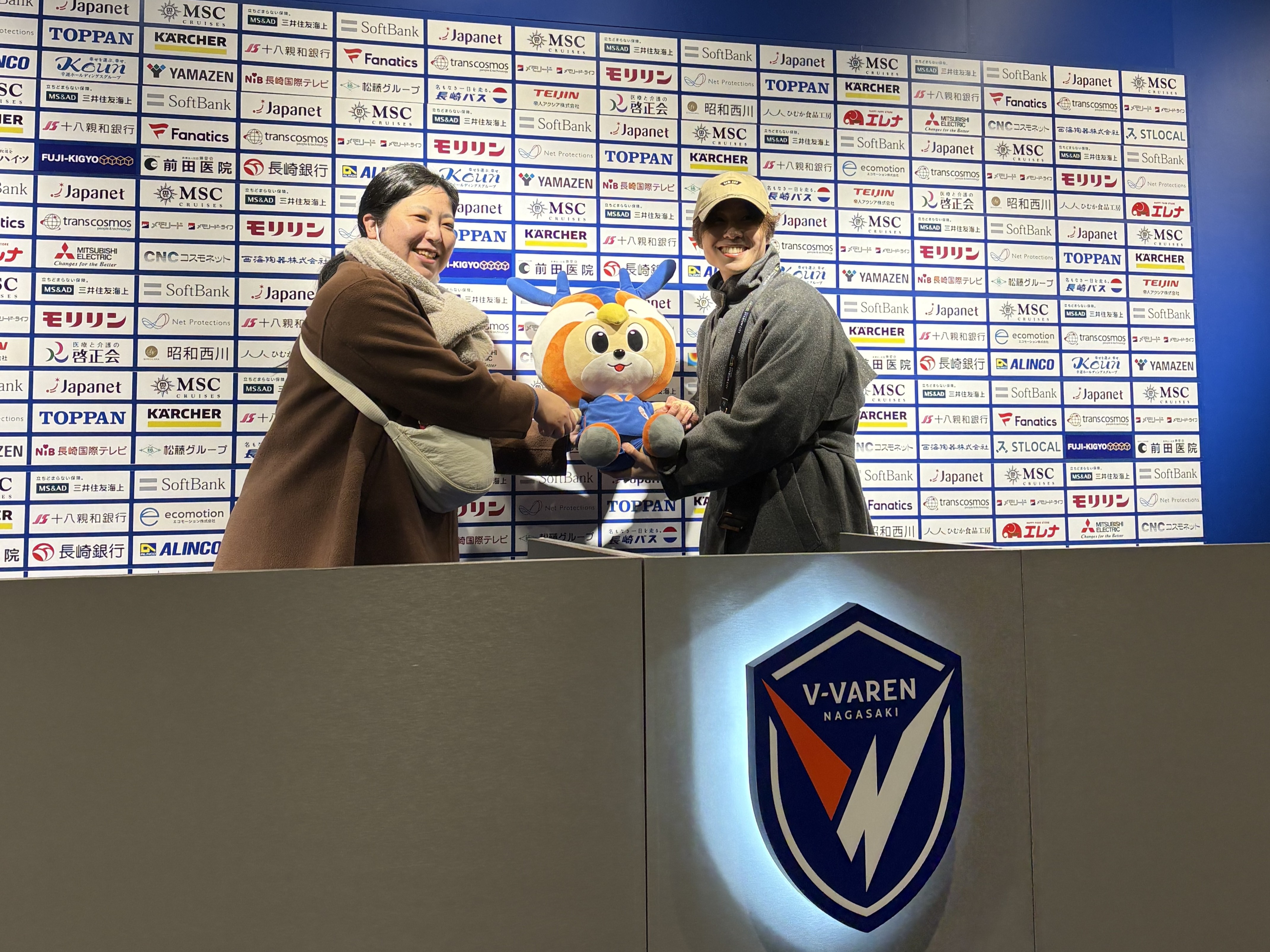 スタジアム内にはラウンジやチームの記者会見を行う部屋も。記念撮影も可能で貴重な体験ができます。キューカンのスタッフも記者会見室でしっかり撮影をしてきました(笑)