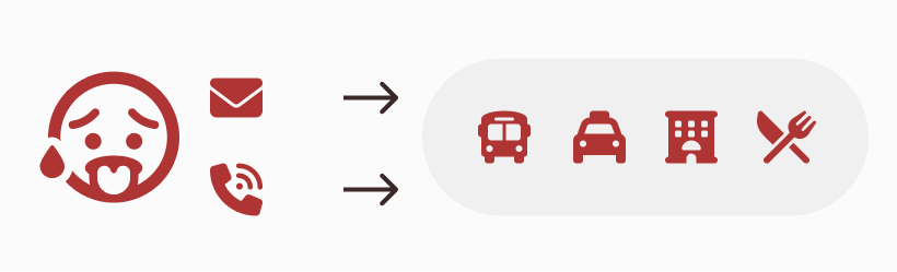 見積もり、空き状況確認、予約までキューカンが一括対応!!一度の連絡で各施設へ手配の内容共有が可能です。